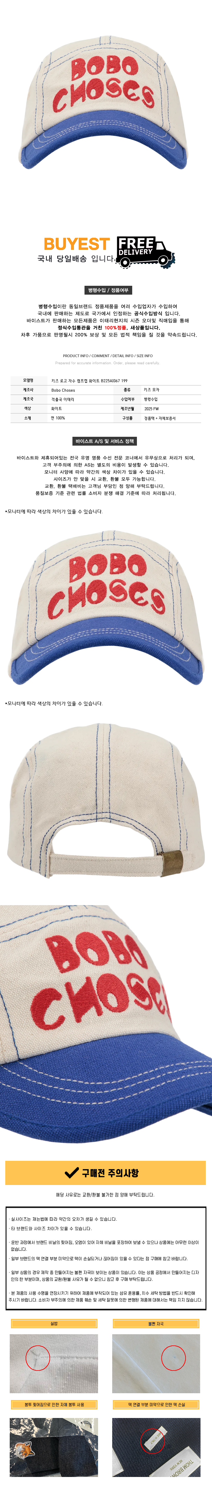 * 모 델 명 : 키즈 로고 자수 캠프캡 화이트 B225AI067 199