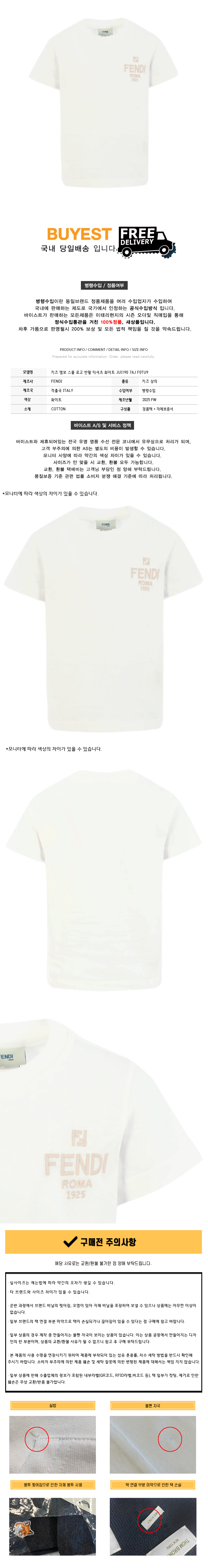 * 모 델 명 : 키즈 엠보 스몰 로고 반팔 티셔츠 화이트 JUI190 7AJ F0TU9