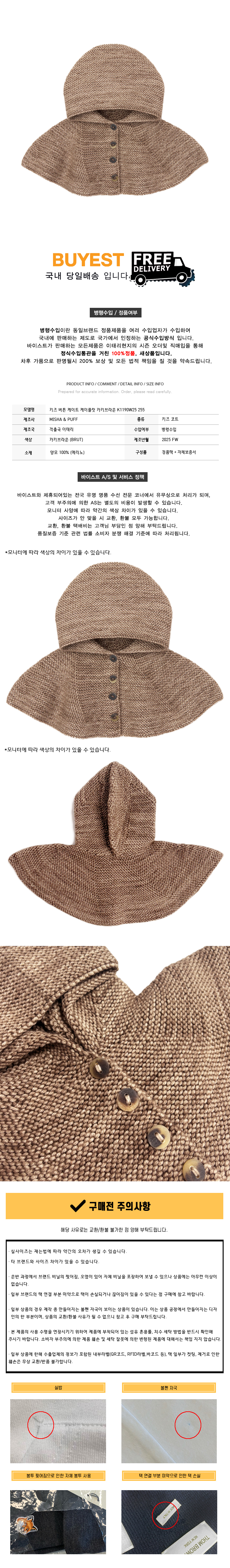 * 모 델 명 : 키즈 버튼 케이트 케이플릿 카키브라운 K1190W25 255