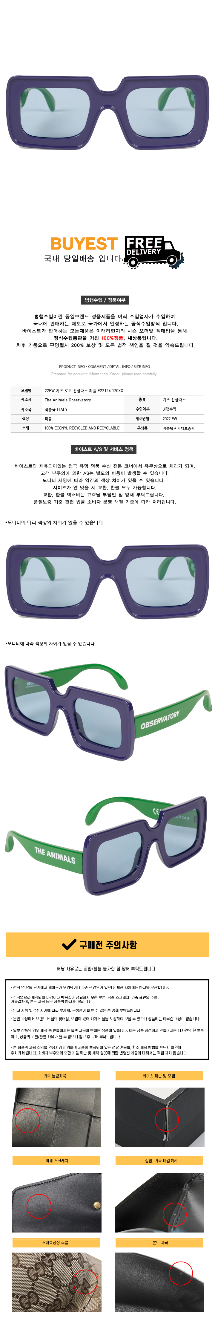 * 모 델 명 : 22FW 키즈 로고 선글라스 퍼플 F22124 120XX
