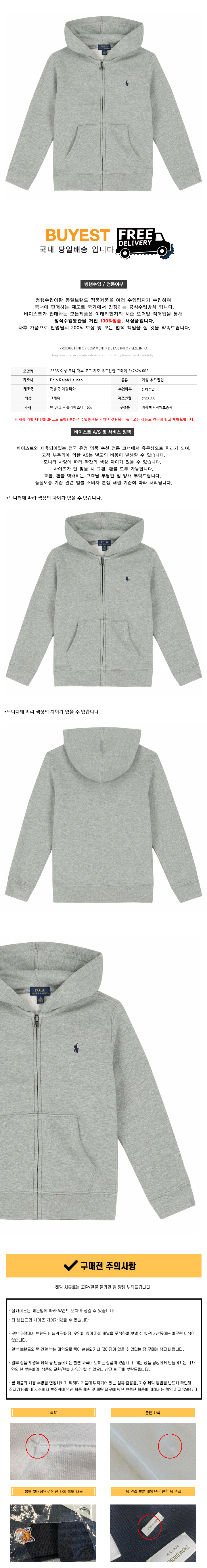 23SS 여성 포니 자수 로고 기모 후드집업 그레이 547626 002