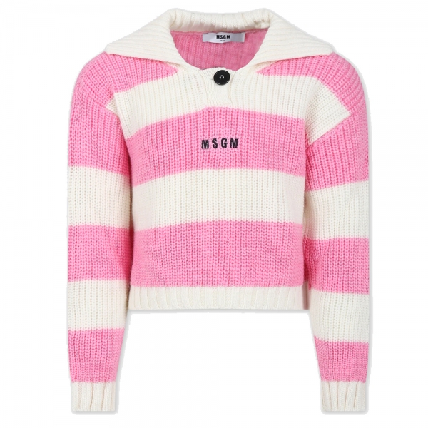 * 모 델 명 : 23FW 키즈 로고 자수 스프라이프 울 니트 아이보리/핑크 F3MSJGJP033 04236