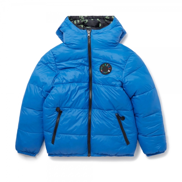 * 모 델 명 : 23FW 키즈 로고 패치 패턴 리버서블 패딩 자켓 블루블랙 TT2R37 Z0536 664
