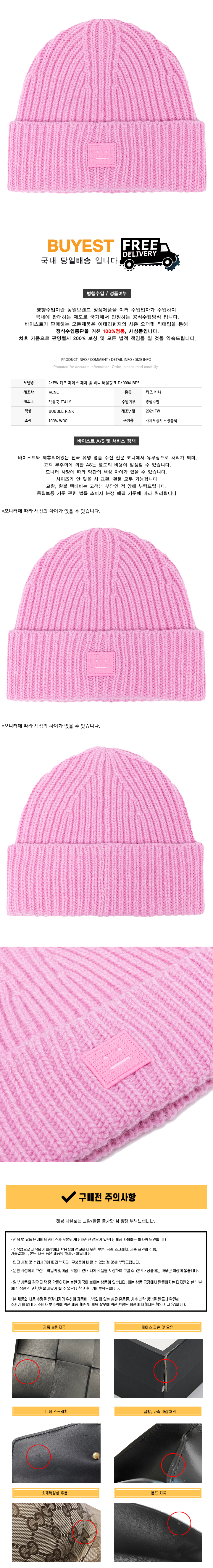 * 모 델 명 : 24FW 키즈 페이스 패치 울 비니 버블핑크 D40006 BP5