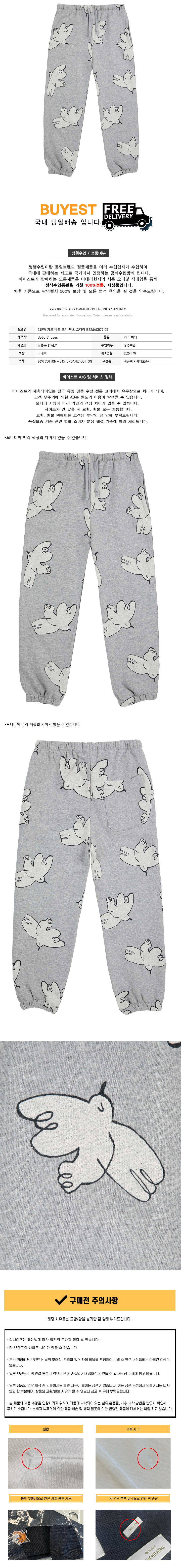 * 모 델 명 : 24FW 키즈 버드 조거 팬츠 그레이 B224AC077 051