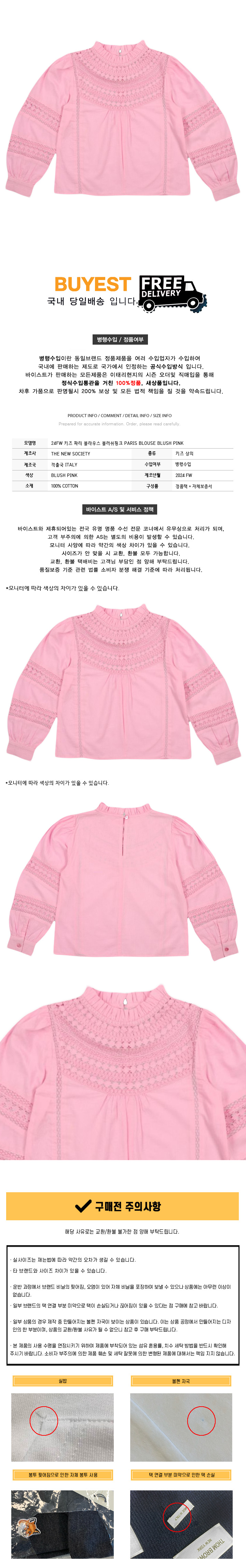 * 모 델 명 : 24FW 키즈 파리 블라우스 블러쉬핑크 PARIS BLOUSE BLUSH PINK
