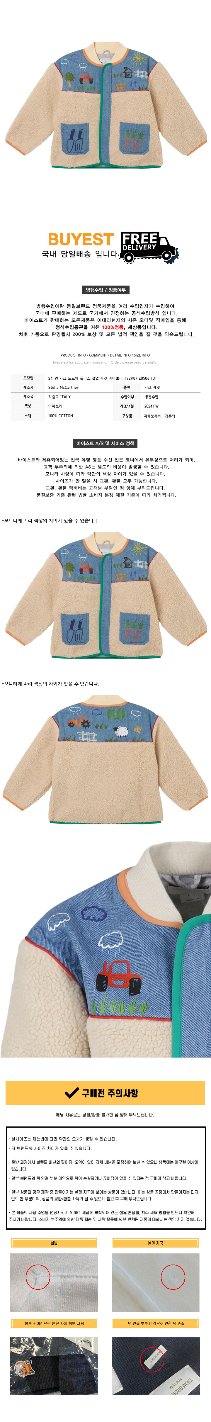 * 모 델 명 : 24FW 키즈 드로잉 플리스 집업 자켓 아이보리 TV2P87 Z0506 101