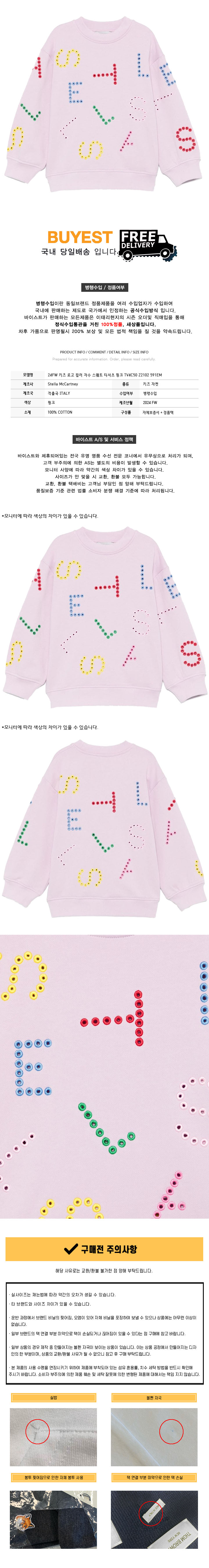 * 모 델 명 : 24FW 키즈 로고 컬러 자수 스웨트 티셔츠 핑크 TV4C50 Z2102 591EM