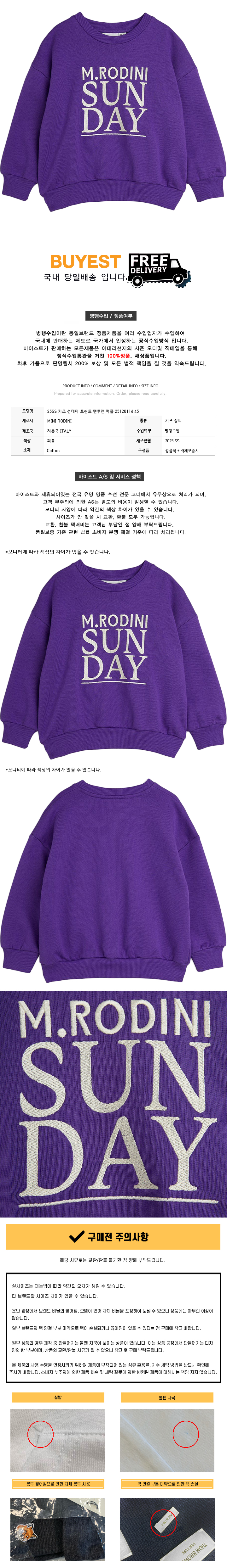 * 모 델 명 : 25SS 키즈 선데이 프린트 맨투맨 퍼플 25120114 45