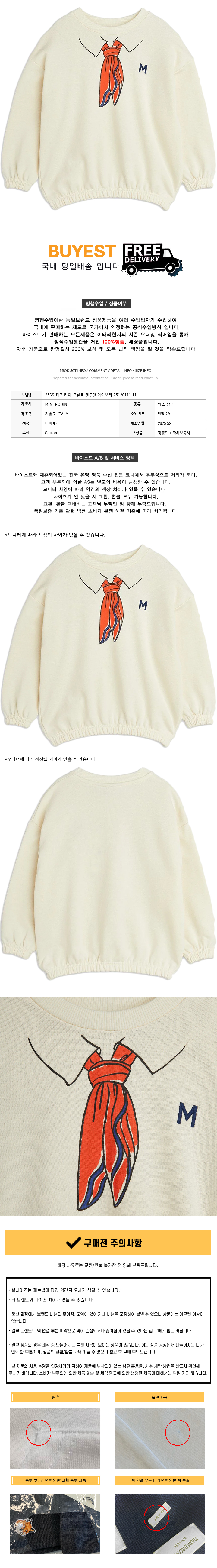 * 모 델 명 : 25SS 키즈 타이 프린트 맨투맨 아이보리 25120111 11