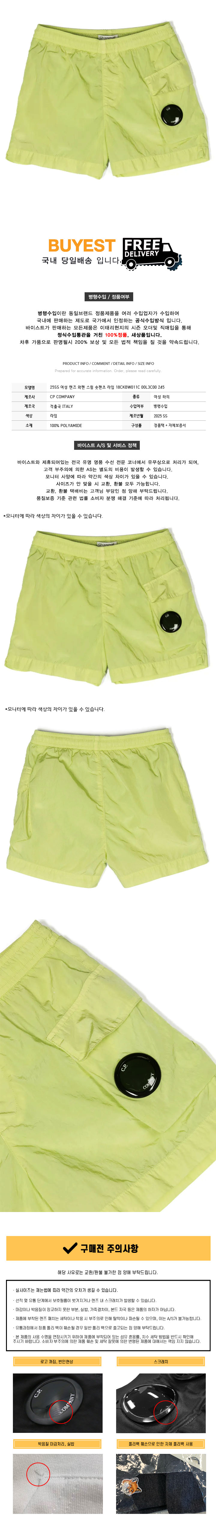 * 모 델 명 : 25SS 여성 렌즈 와펜 스윔 숏팬츠 라임 18CKBW011C 00L3C00 245