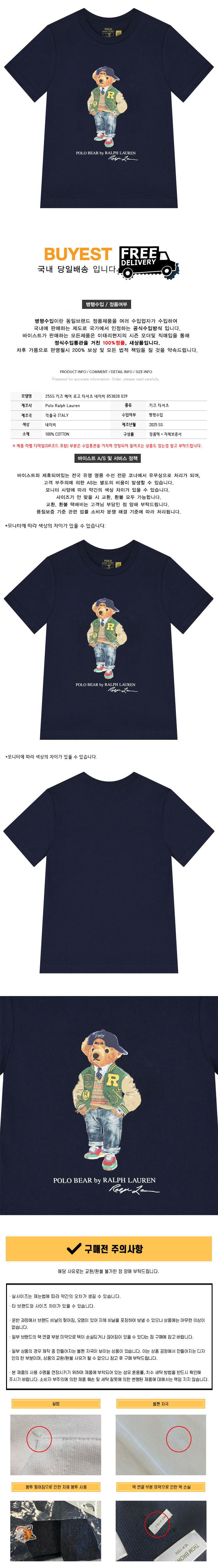 * 모 델 명 : 25SS 키즈 베어 로고 티셔츠 네이비 853828 039