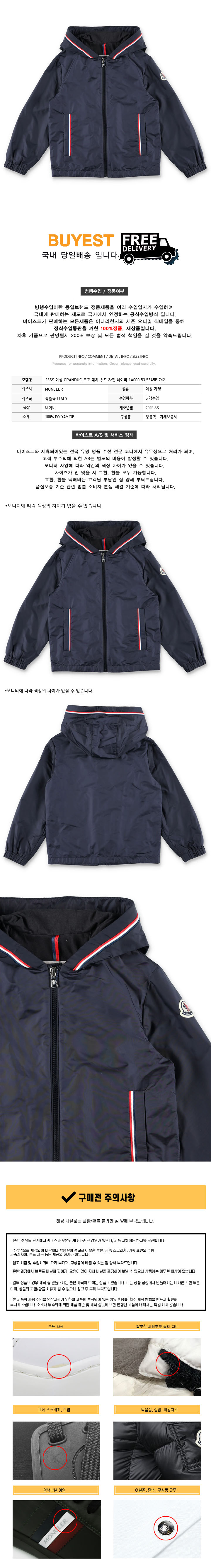 * 모 델 명 : 25SS 여성 GRANDUC 로고 패치 후드 자켓 네이비 1A000 53 53A5E 742