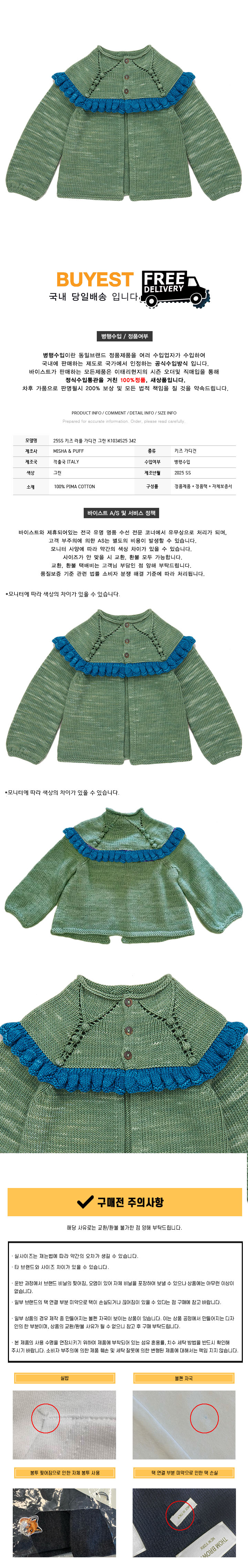 * 모 델 명 : 25SS 키즈 러플 가디건 그린 K1034S25 342