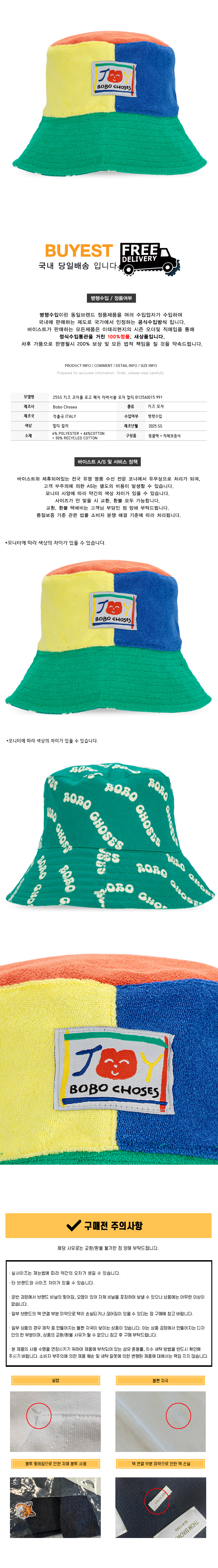 * 모 델 명 : 25SS 키즈 조이풀 로고 패치 리버서블 모자 멀티 B125AI015 991