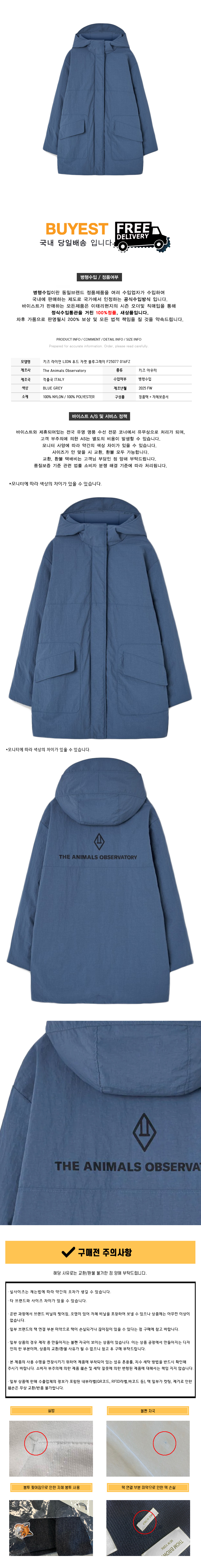 * 모 델 명 : 키즈 라이언 LION 후드 자켓 블루그레이 F25077 016FZ