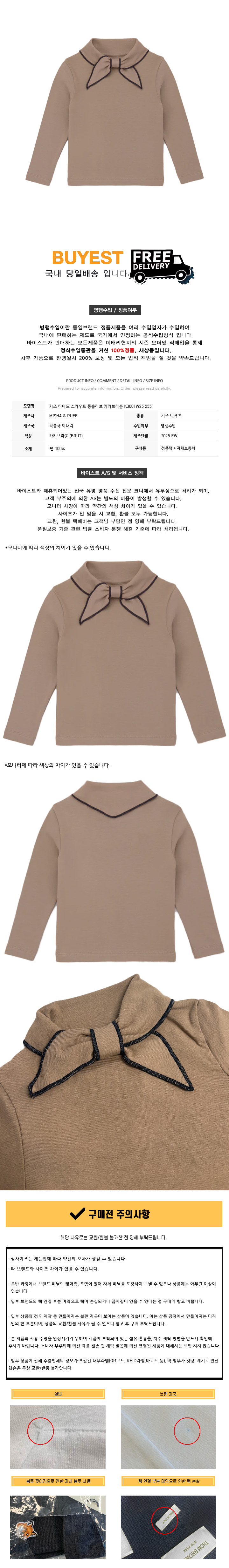 * 모 델 명 : 키즈 타이드 스카우트 롱슬리브 카키브라운 K3001W25 255