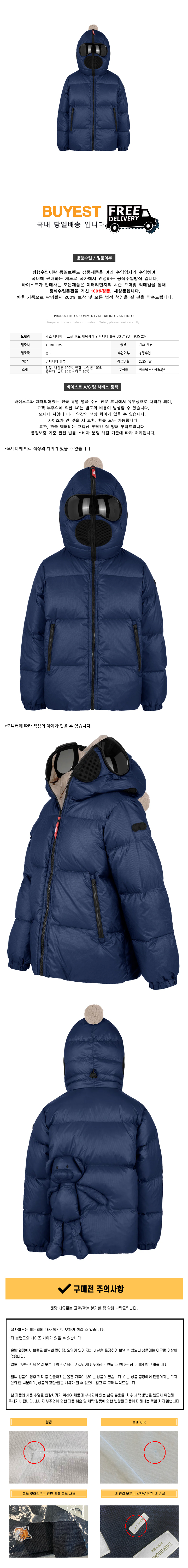 * 모 델 명 : 키즈 테디베어 고글 후드 패딩자켓 인피니티 블루 JG 719B T KJ5 234