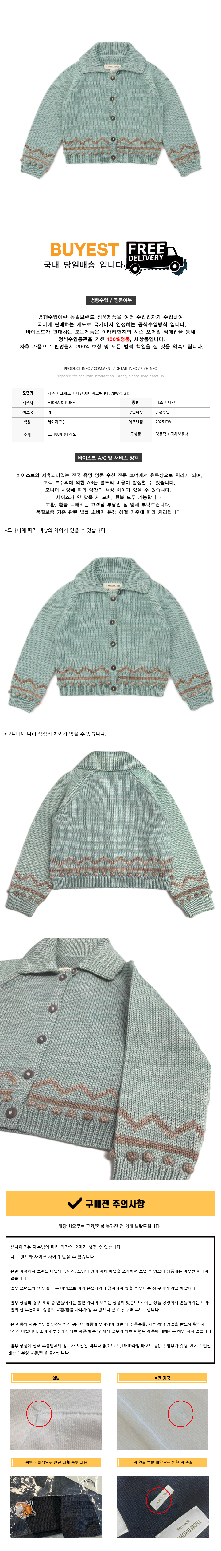 * 모 델 명 : 키즈 지그재그 가디건 세이지그린 K1220W25 315