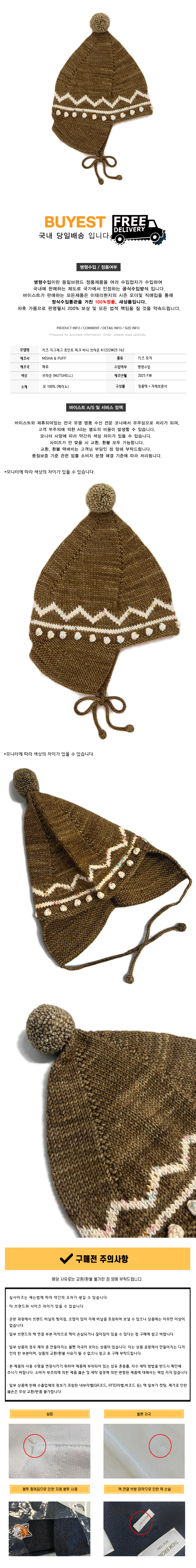 * 모 델 명 : 키즈 지그재그 포인트 피크 비니 브라운 K1222W25 762