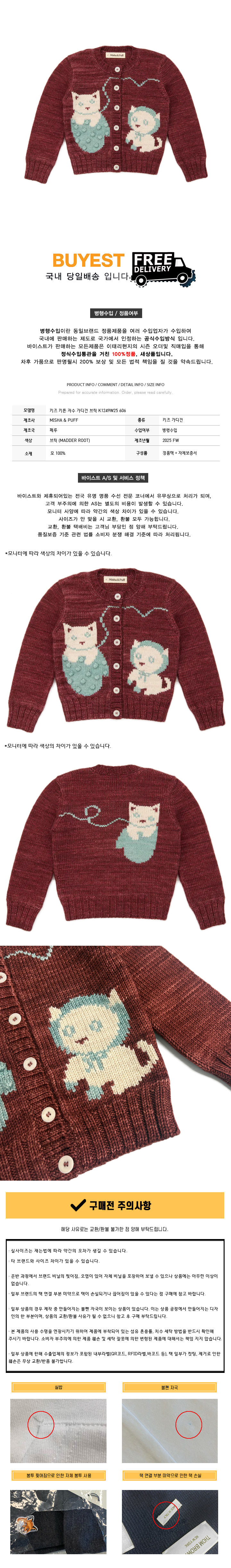 * 모 델 명 : 키즈 키튼 자수 가디건 브릭 K1249W25 606