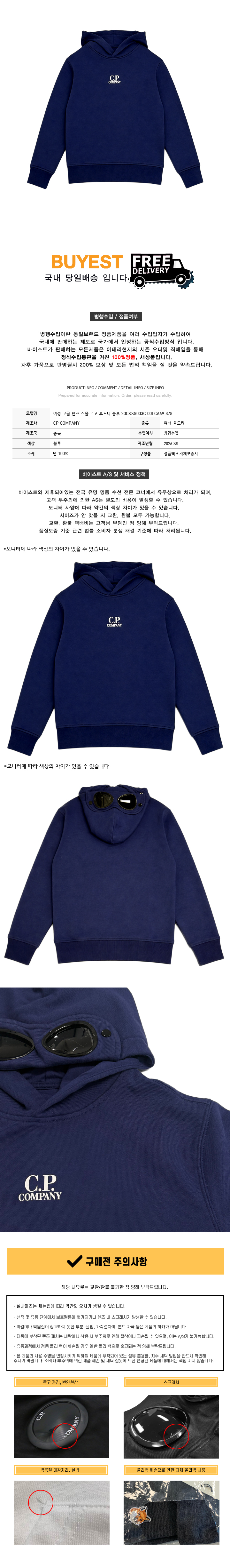 * 모 델 명 : 여성 고글 렌즈 스몰 로고 후드티 블루 20CKSS003C 00LCA69 878