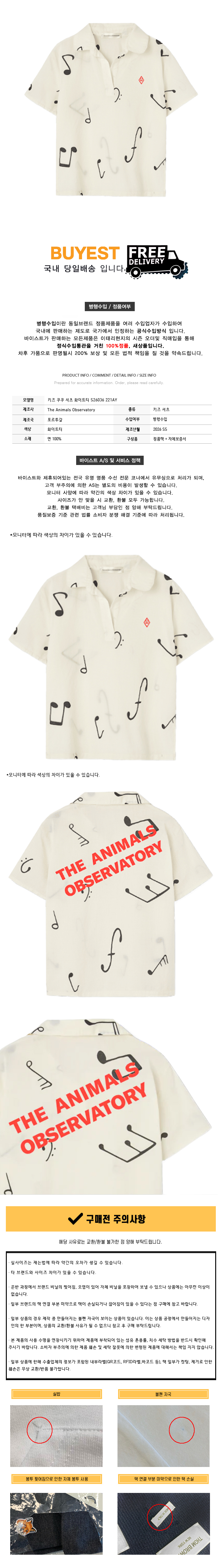 * 모 델 명 : 키즈 쿠쿠 셔츠 화이트티 S26036 221AY