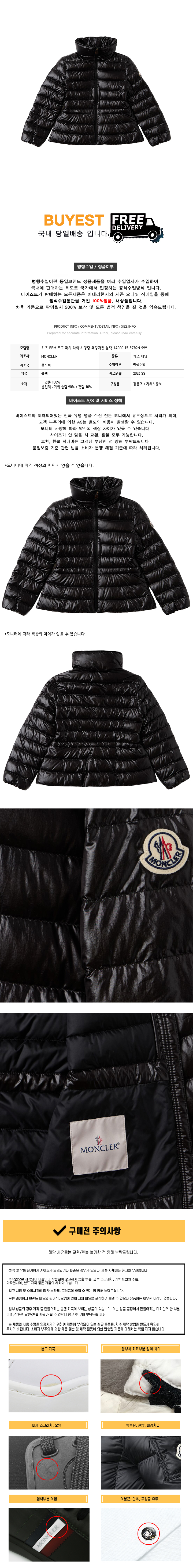 * 모 델 명 : 키즈 FEM 로고 패치 하이넥 경량 패딩자켓 블랙 1A000 15 597QN 999