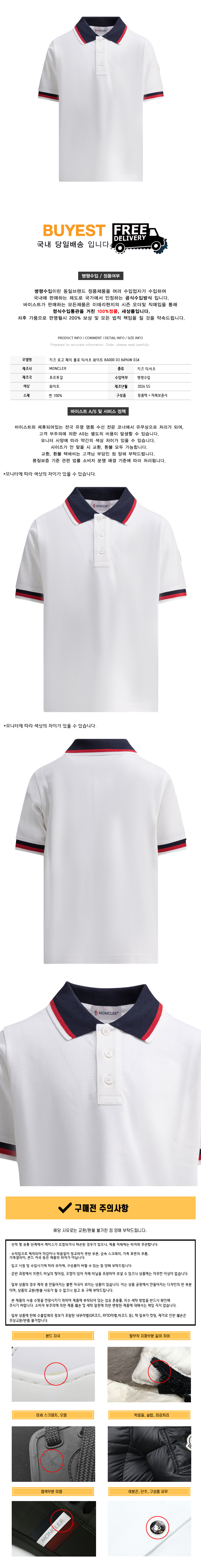 * 모 델 명 : 키즈 로고 패치 폴로 티셔츠 화이트 8A000 03 8496W 034