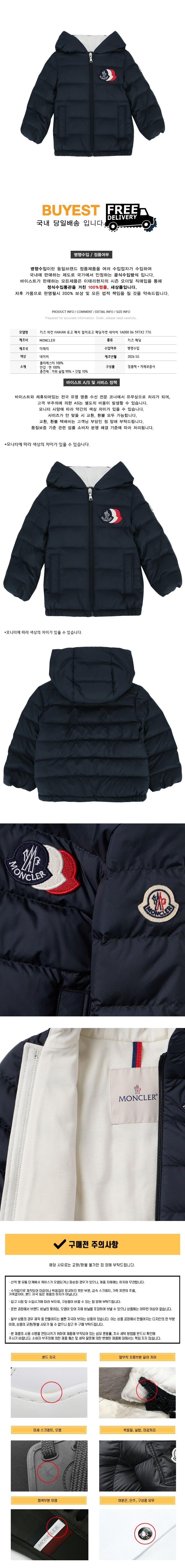 * 모 델 명 : 키즈 하칸 HAKAN 로고 패치 컬러로고 패딩자켓 네이비 1A000 06 597X2 77G