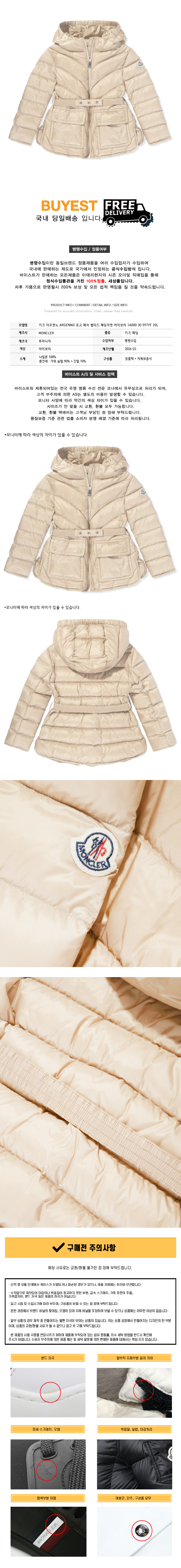 * 모 델 명 : 키즈 아르젠노 ARGENNO 로고 패치 벨티드 패딩자켓 아이보리 1A000 30 597YF 20L