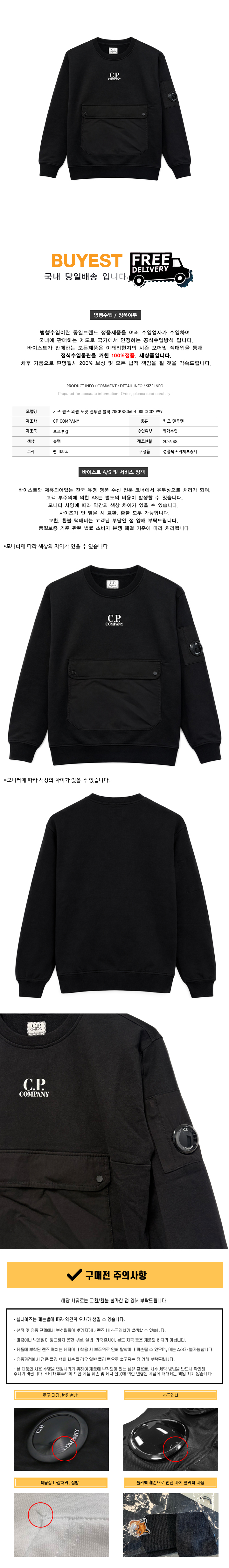* 모 델 명 : 키즈 렌즈 와펜 포켓 맨투맨 블랙 20CKSS060B 00LCC02 999