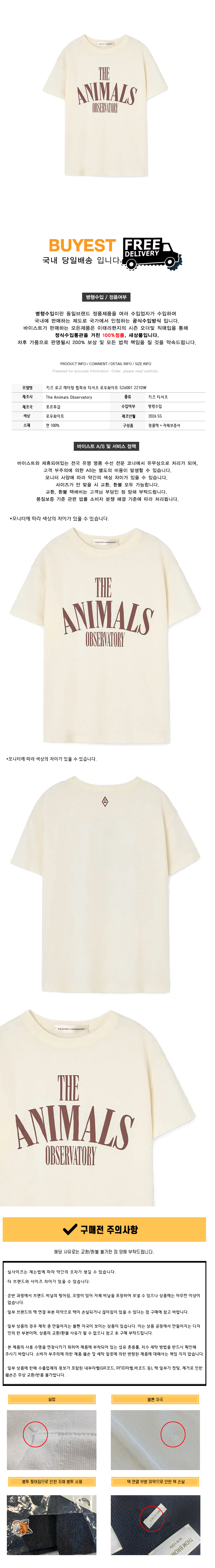 * 모 델 명 : 키즈 로고 레터링 펍피쉬 티셔츠 로우화이트 S26001 221DW