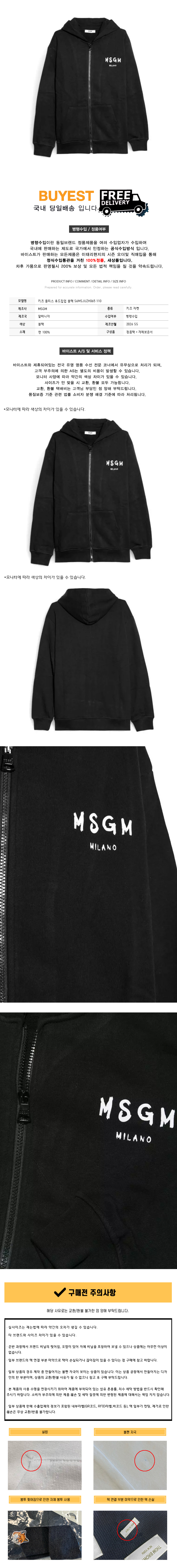 * 모 델 명 : 키즈 플리스 후드집업 블랙 S6MSJUZH065 110