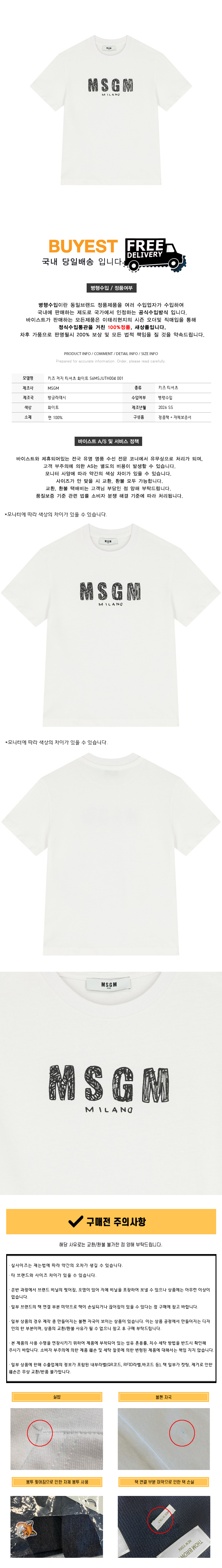 * 모 델 명 : 키즈 저지 티셔츠 화이트 S6MSJUTH004 001