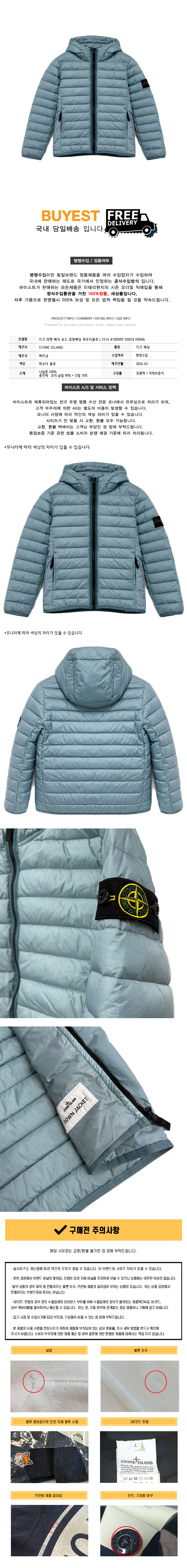 * 모 델 명 : 키즈 와펜 패치 후드 경량패딩 파우더블루 L1S16 4100009 S0024 V004A