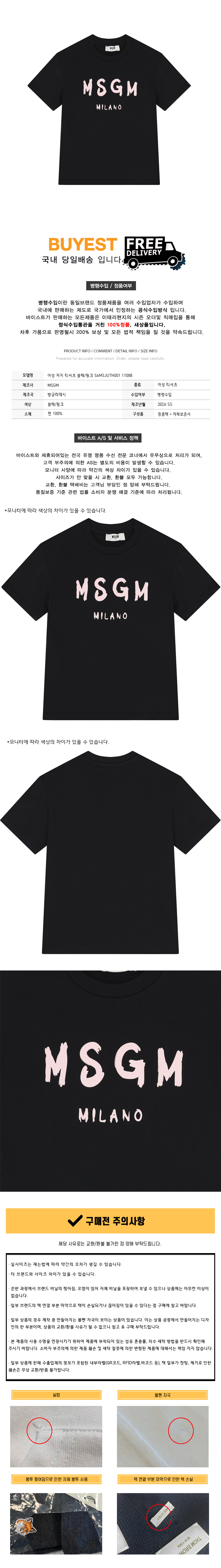 * 모 델 명 : 여성 저지 티셔츠 블랙/핑크 S6MSJUTH001 11088