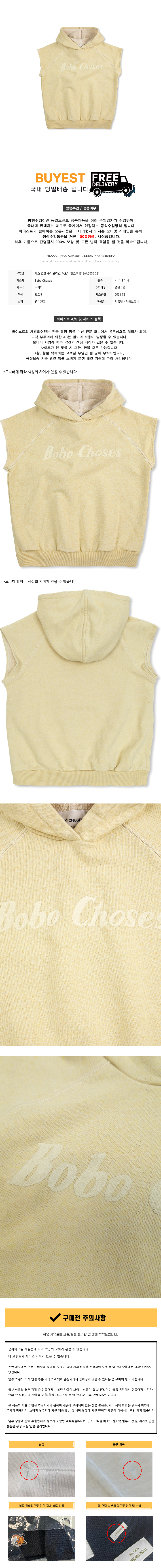 키즈 로고 슬리브리스 후드티 옐로우 B126AC055 721