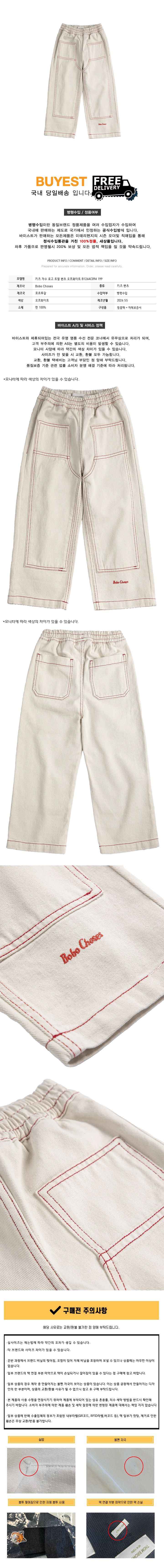 키즈 자수 로고 트윌 팬츠 오프화이트 B126AC094 199