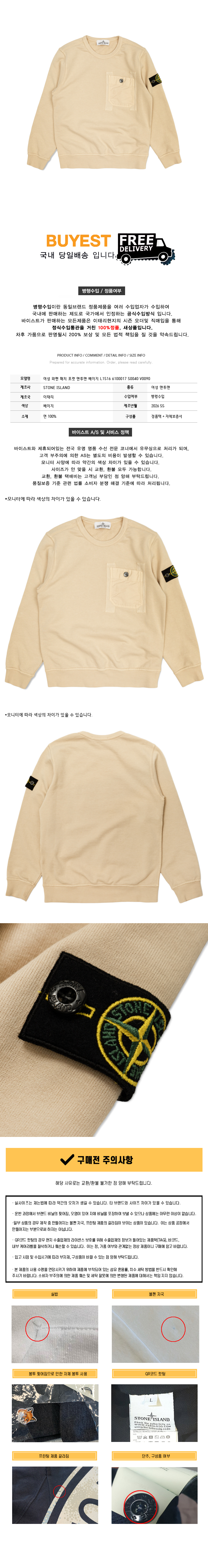 여성 와펜 패치 포켓 맨투맨 베이지 L1S16 6100017 S0040 V0090