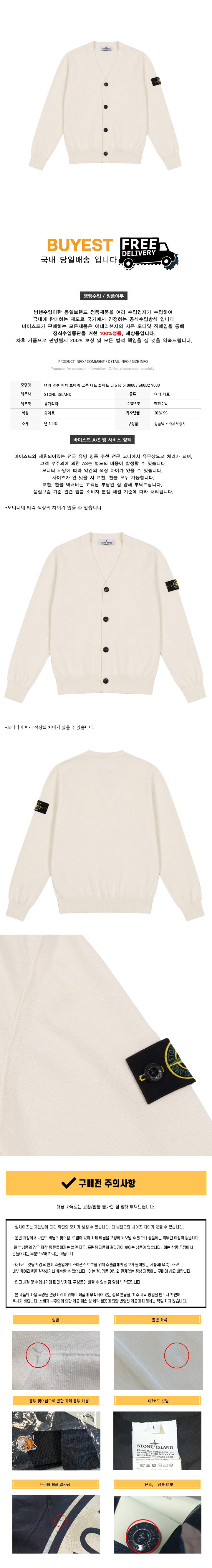 여성 와펜 패치 브이넥 코튼 니트 화이트 L1S16 5100003 S00B2 V0001