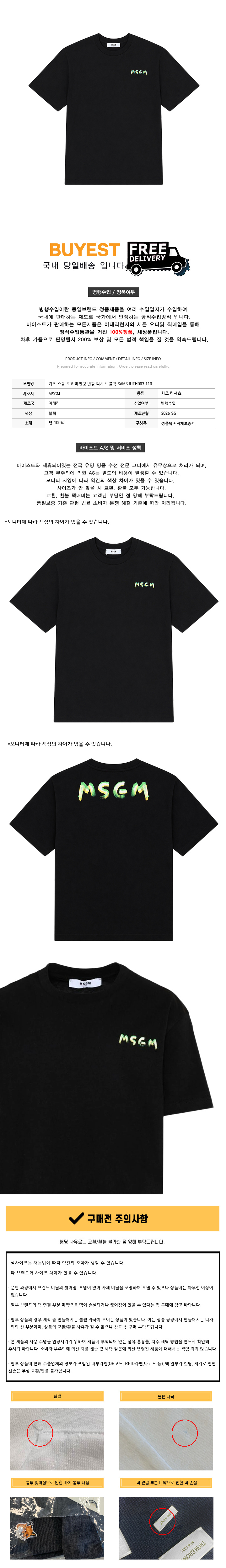 키즈 스몰 로고 페인팅 반팔 티셔츠 블랙 S6MSJUTH003 110
