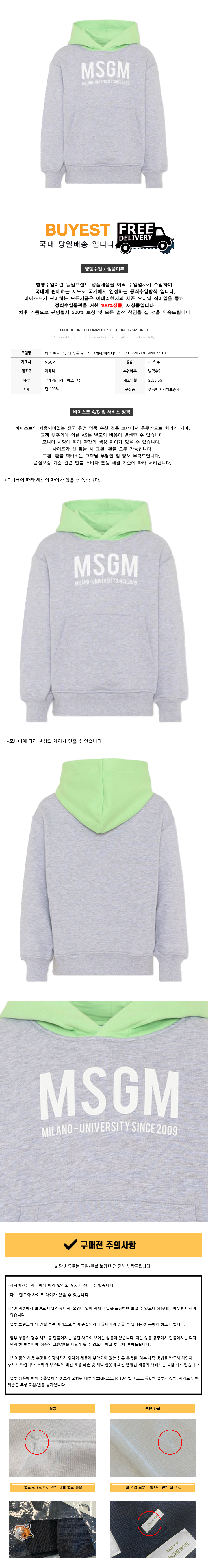 키즈 로고 프린팅 투톤 후드티 그레이/파라다이스 그린 S6MSJBHS050 27101
