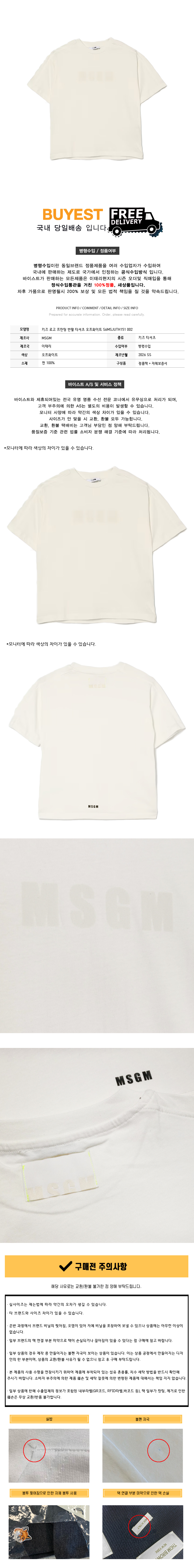 키즈 로고 프린팅 반팔 티셔츠 오프화이트 S6MSJUTH151 002