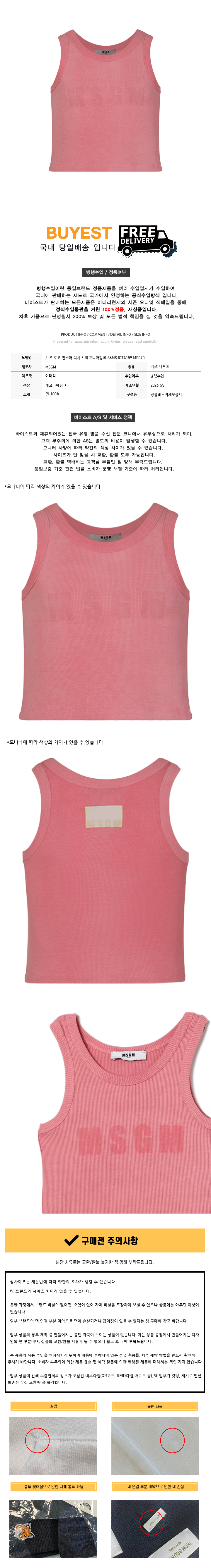 키즈 로고 민소매 티셔츠 베고니아핑크 S6MSJGTA159 MS070