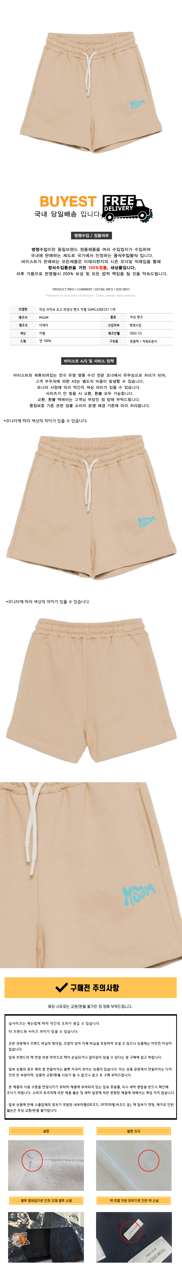 여성 브러쉬 로고 버뮤다 팬츠 카멜 S6MSJUBE221 178
