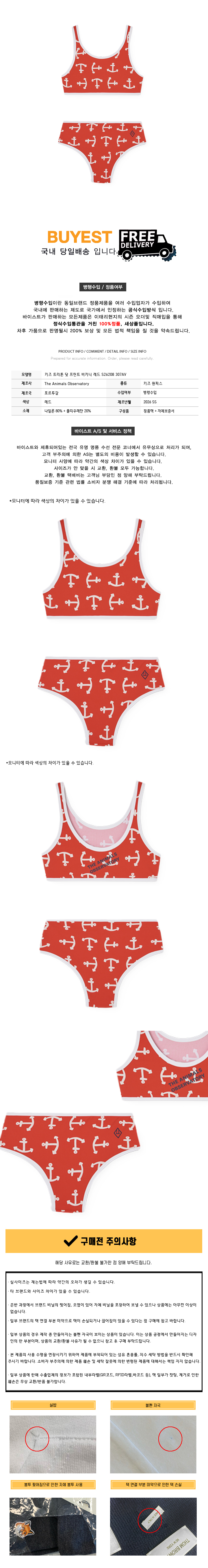 키즈 트리톤 닺 프린트 비키니 레드 S26208 307AV