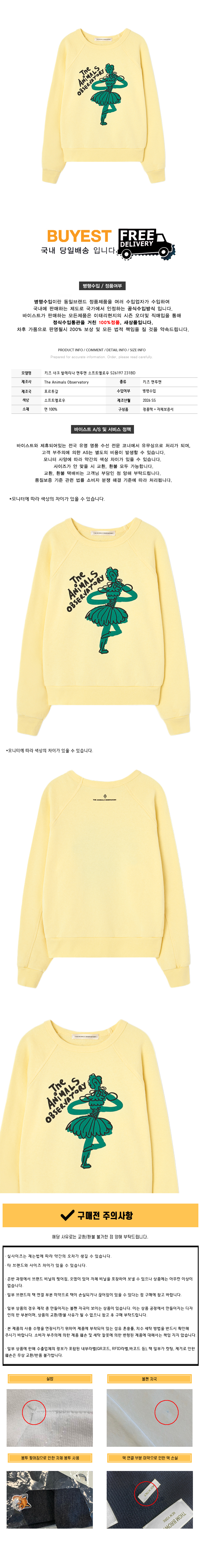 키즈 샤크 발레리나 맨투맨 소프트옐로우 S26197 231BD