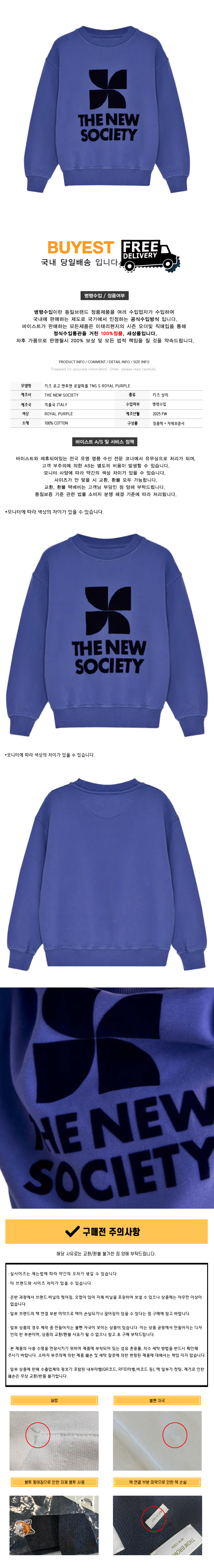 * 모 델 명 : 키즈 로고 맨투맨 로얄퍼플 TNS S ROYAL PURPLE