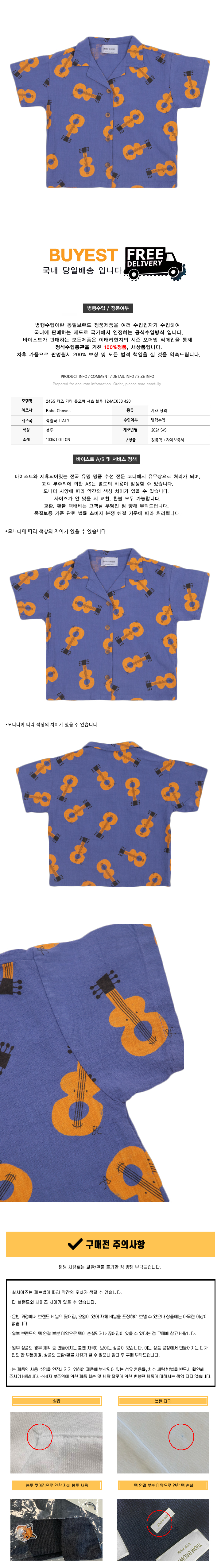 * 모 델 명 : 24SS 키즈 기타 올오버 셔츠 블루 124AC038 420